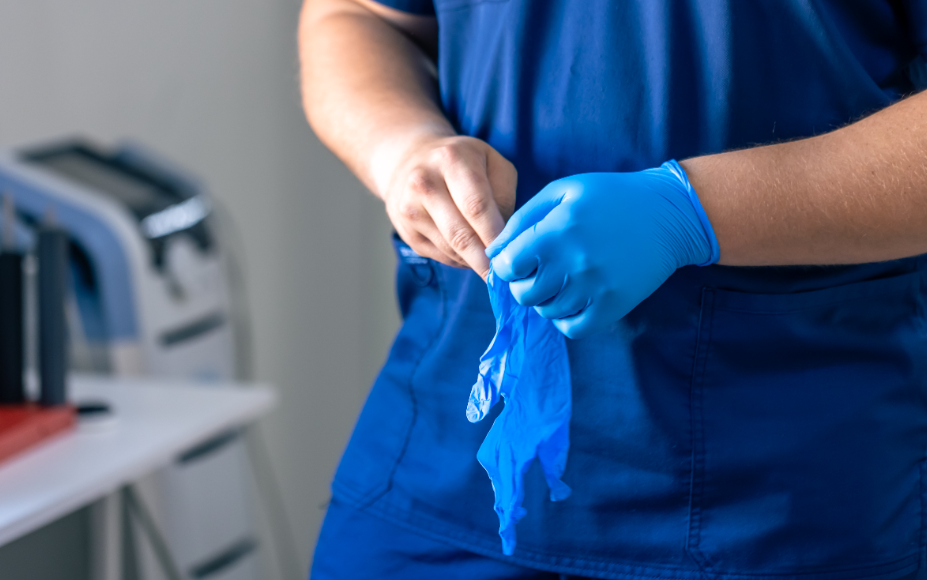 Drawing a small vial of blood from the patient.